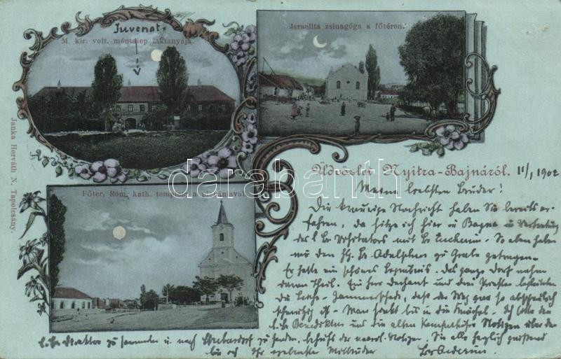 Nyitrabajna with synagogue Litho (b) https://www.darabanth.com/de/10-Gross-Auktion/10.1/Ansichtskarten-Ungarn/~2739/Nyitrabajna-with-synagogue-Litho-b~II300009