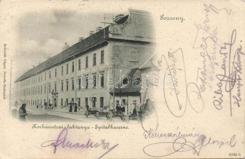 Pozsony Hospital st. military barracks https://www.darabanth.com/de/10-Gross-Auktion/10.1/Ansichtskarten-Ungarn/~2739/Pozsony-Hospital-st-military-barracks~II305803