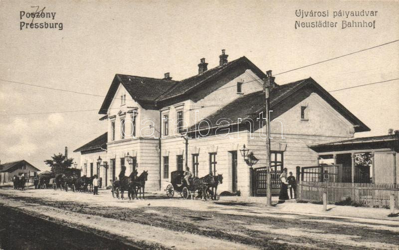 Pozsony Ujváros Railway-station https://www.darabanth.com/de/10-Gross-Auktion/10.1/Ansichtskarten-Ungarn/~2739/Pozsony-Ujvaros-Railway-station~II288159