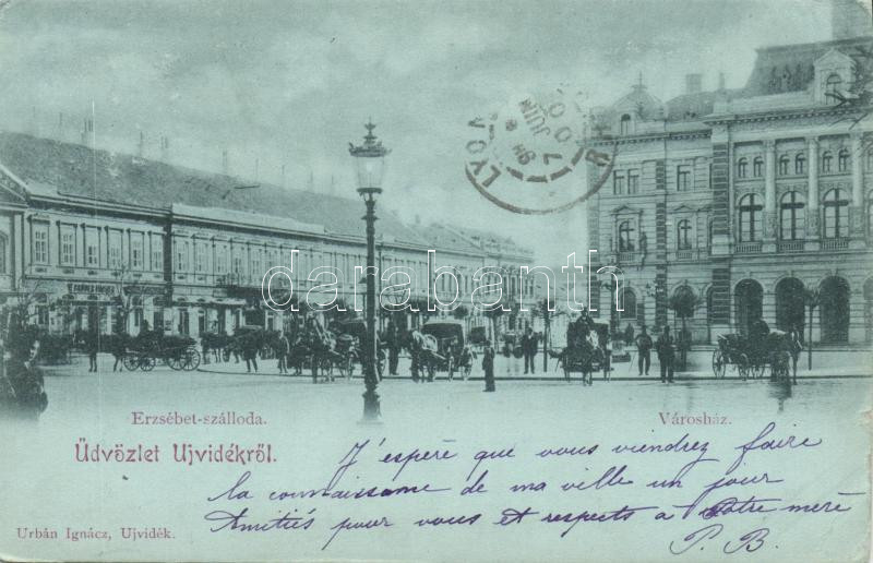Beschreibung: Újvidék with Hotel Erzsébet and the town hall