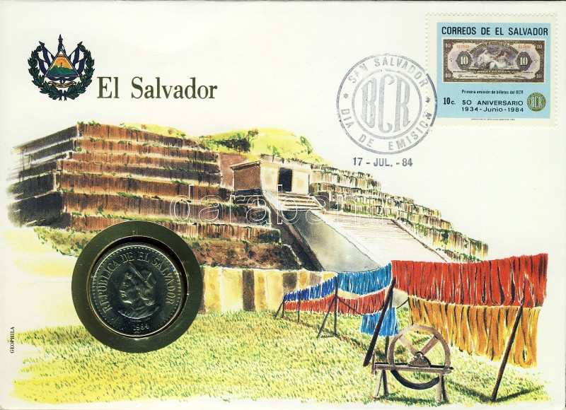 El Salvador 1984. 1C érmes, bélyeges boríték T:1 https://www.darabanth.com/de/100-Fernauktion/100.0/Numismatik/~100022/El-Salvador-1984-1C-ermes-belyeges-boritek-T1~II235825