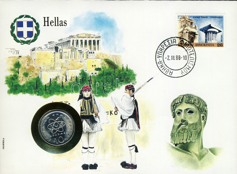 Görögország 1986. 10Dr érmes, bélyeges boríték T:1 https://www.darabanth.com/de/100-Fernauktion/100.0/Numismatik/~100022/Gorogorszag-1986-10Dr-ermes-belyeges-boritek-T1~II235829