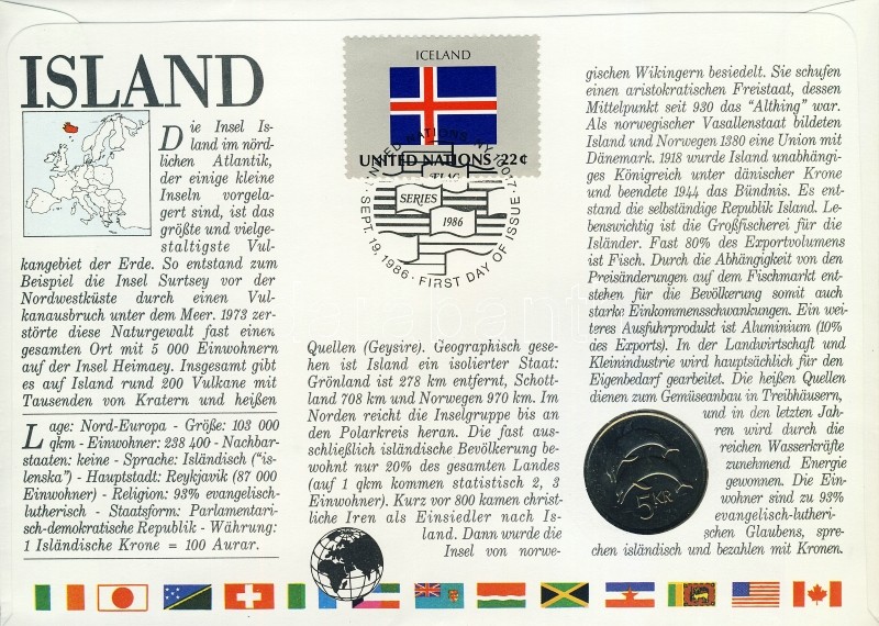 Beschreibung: Izland 1984. 5Kr érmés, bélyeges boríték T:1