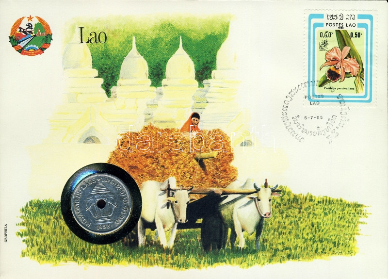 Laosz 1952. 20c érmés, bélyeges boríték T:1 https://www.darabanth.com/de/100-Fernauktion/100.0/Numismatik/~100022/Laosz-1952-20c-ermes-belyeges-boritek-T1~II235806