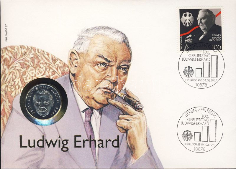 Beschreibung: NSZK 1994. 2M "Ludwig Erhard" érmés, bélyeges borítékon, ismertetővel T:1