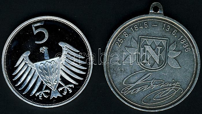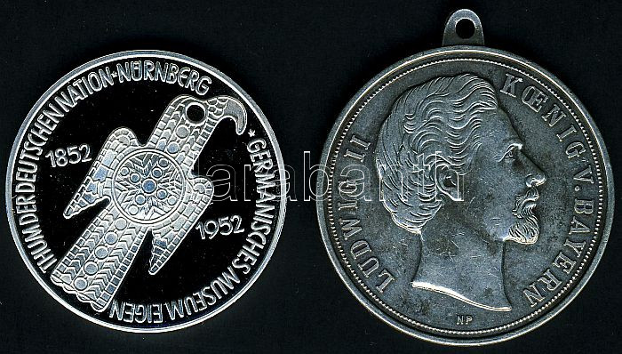Beschreibung: NSZK DN "Germanische Museum" ffém emlékérem T:PP + NSZK modern Ffm emlékveret "II. Lajos-bajor király" T:2