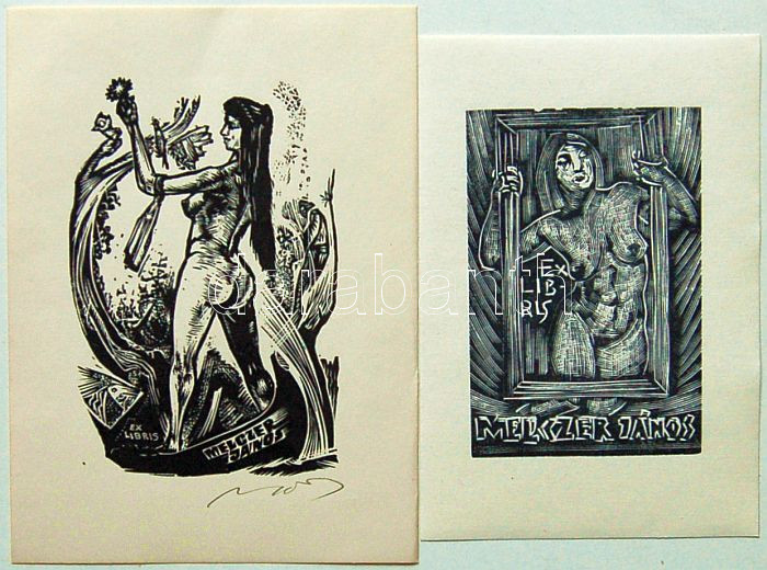 Beschreibung: 2 db erotikus ex libris, az egyik szignóval