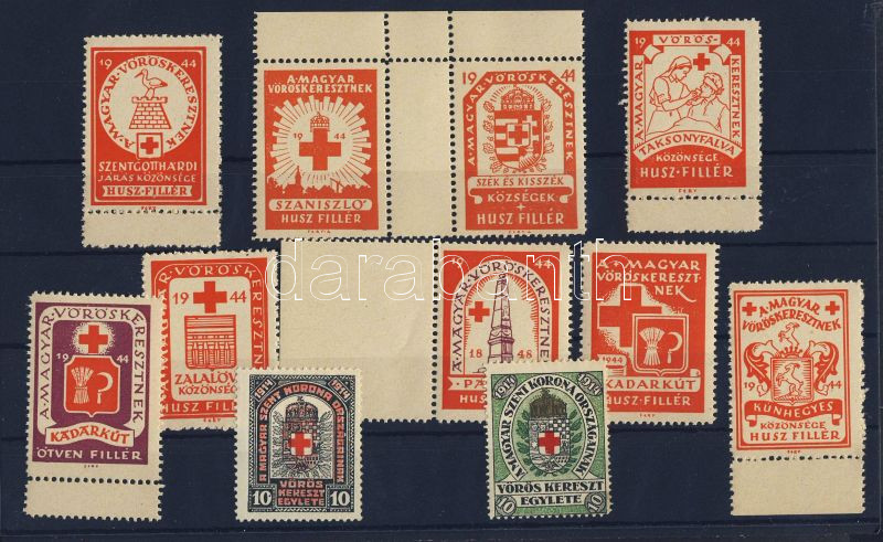 Beschreibung: 1914-1944 11 db Vöröskereszt közigazgatási és segélybélyeg