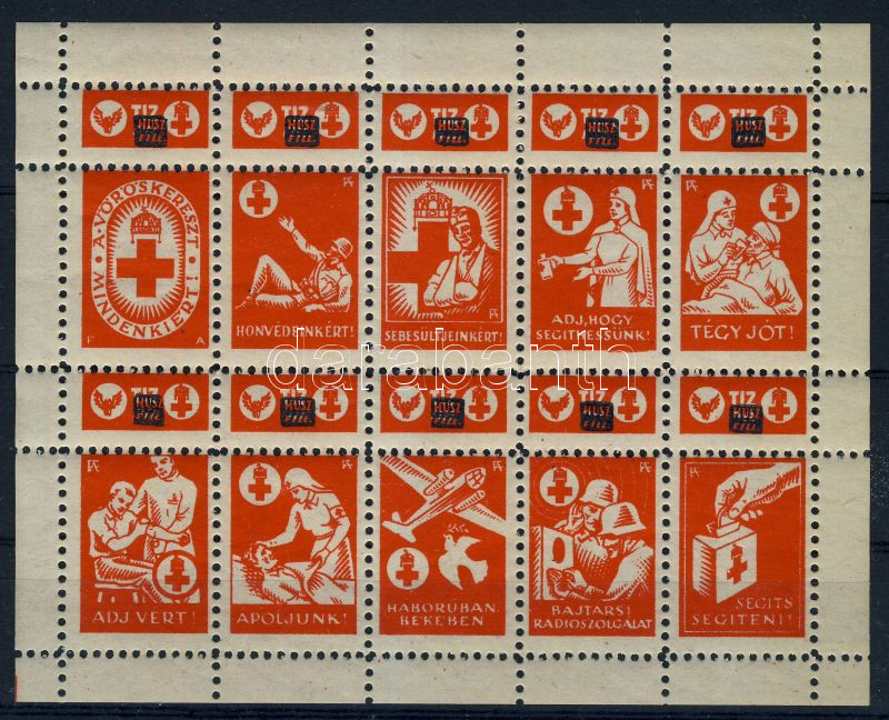 Beschreibung: 1941-1944 A Vöröskereszt mindenkiért felülnyomott fogazott kisív Ritka! jelzett!
