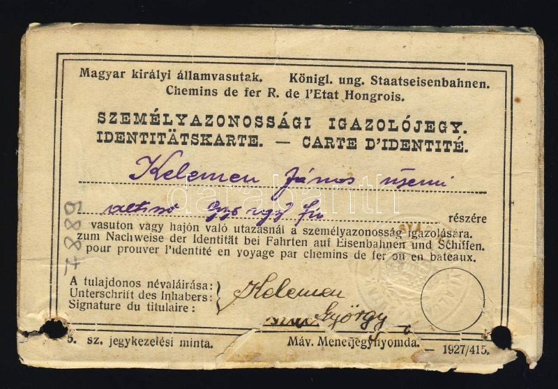1927 Magyar államvasutak kedvezményre jogosító fényképes igazolvány https://www.darabanth.com/de/101-Fernauktion/101.0/Andere-Sammelgebiete/~301/1927-Magyar-allamvasutak-kedvezmenyre-jogosito-fenykepes-igazolvany~II236840