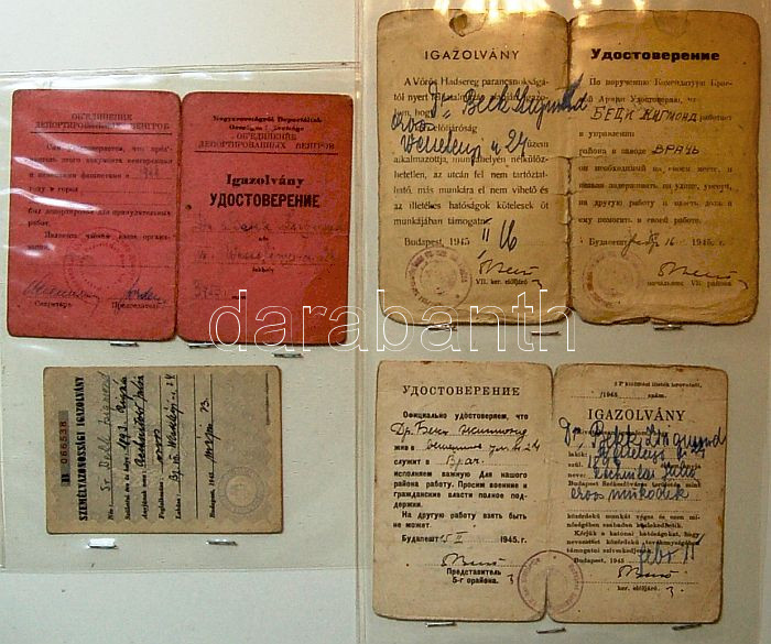 1945 Személyi- Orvosi- és Deportált igazolványok 4 db / Personalauswei... https://www.darabanth.com/de/101-Fernauktion/101.0/Andere-Sammelgebiete/~304/1945-Szemelyi-Orvosi-es-Deportalt-igazolvanyok-4-db-Personalausweisse-Deportiertausweis-Ar~II238888