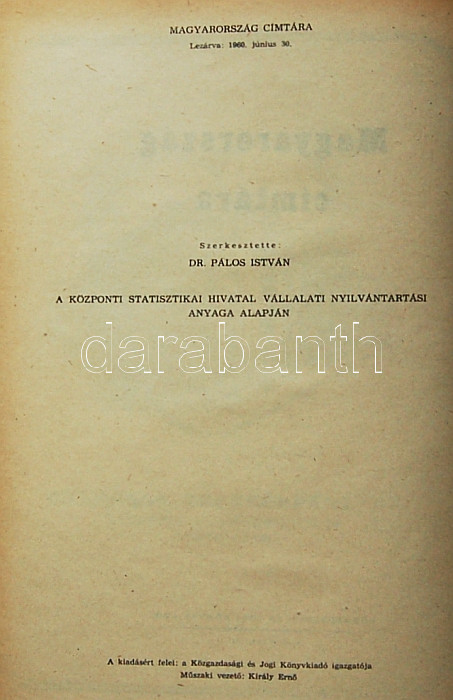 1961 Magyarország címtára, Közg. és jogi kiadó https://www.darabanth.com/de/101-Fernauktion/101.0/Andere-Sammelgebiete/~310/1961-Magyarorszag-cimtara-Kozg-es-jogi-kiado~II238532