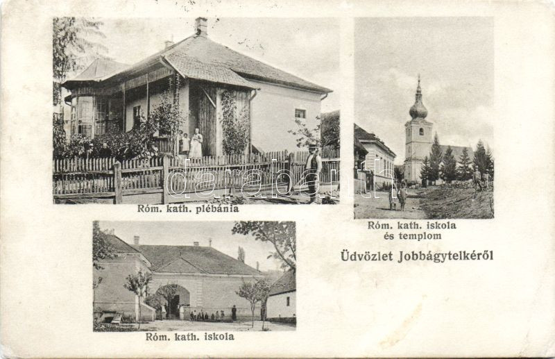Jobbágytelek, plébánia, iskola https://www.darabanth.com/de/101-Fernauktion/101.0/Ansichtskarten/~314/Jobbagytelek-plebania-iskola~II238675