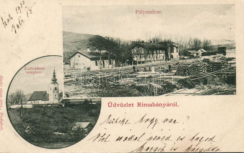 Rimabánya pályaudvar, templom https://www.darabanth.com/de/101-Fernauktion/101.0/Ansichtskarten/~314/Rimabanya-palyaudvar-templom~II238708