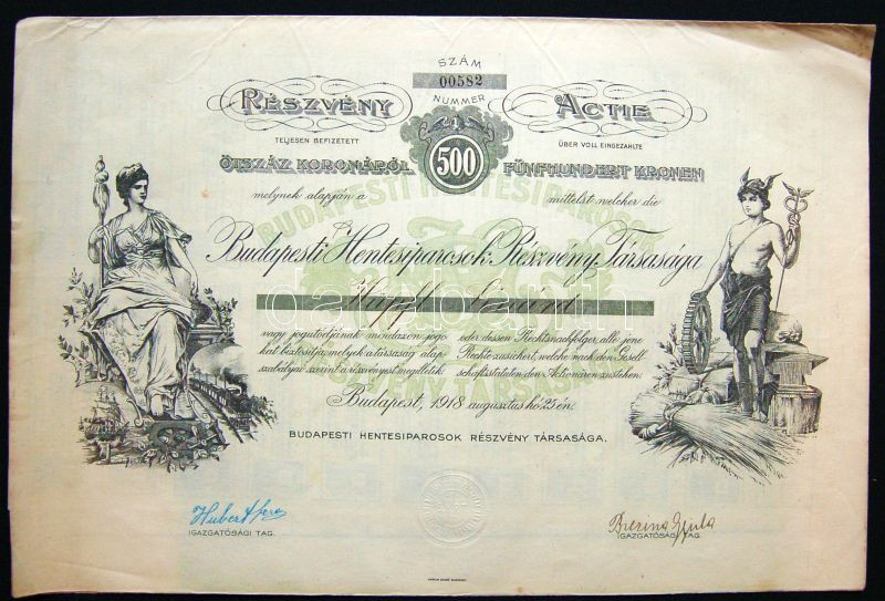 1918. "Budapest Hentesiparosok Részvény Társasága" részvénye 500K-ról,... https://www.darabanth.com/de/101-Fernauktion/101.0/Numismatik/~30010/1918-Budapest-Hentesiparosok-Reszveny-Tarsasaga-reszvenye-500K-rol-nemet-es-magyar-nyel~II237963