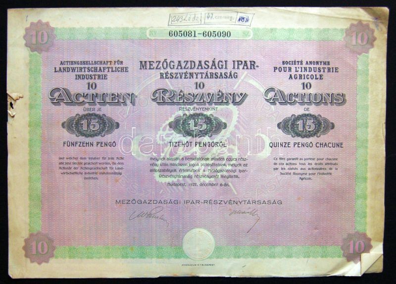 Kis részvény tétel, benne 15db magyar és 2db osztrák 1912-től. Összese... https://www.darabanth.com/de/101-Fernauktion/101.0/Numismatik/~30010/Kis-reszveny-tetel-benne-15db-magyar-es-2db-osztrak-1912-tol-Osszesen-17db~II238699