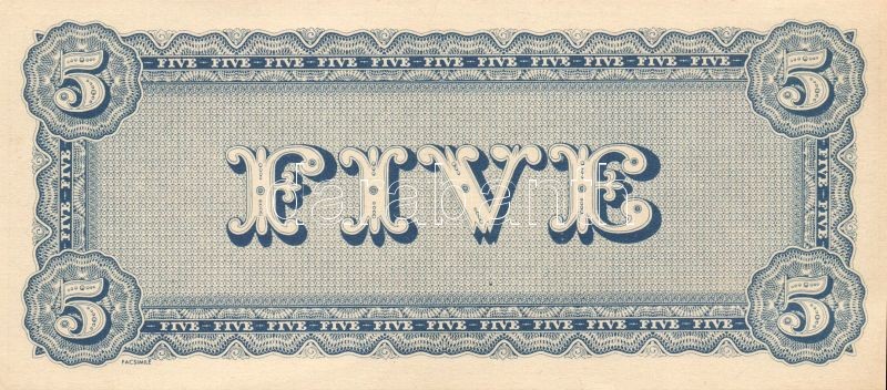 Beschreibung: Amerikai Konföderált Államok 1864. 5$ facsimile kiadás T:II+ Csak egyszer hajtva!