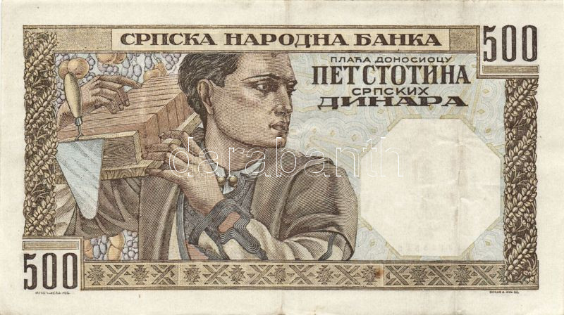 Beschreibung: Szerbia/német megszállás 1941. 500D jugoszláv bankjegy vízjel:női fej T:II