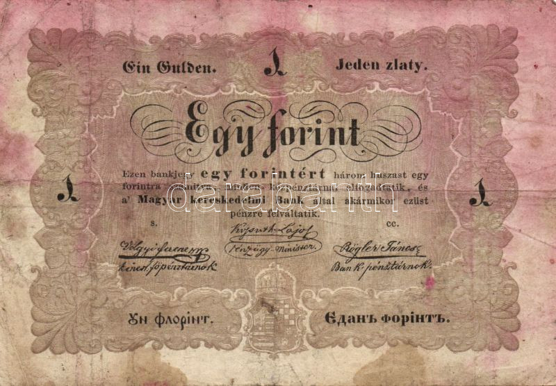 1848. 1Ft "Kossuth-bankó" T:III- https://www.darabanth.com/de/101-Fernauktion/101.0/Numismatik/~30013/1848-1Ft-Kossuth-banko-TIII-~II238410