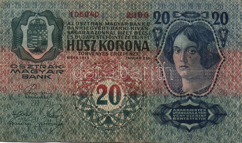 1913. 20K I.kiadás + II.kiadás T:II,III https://www.darabanth.com/de/101-Fernauktion/101.0/Numismatik/~30013/1913-20K-Ikiadas-plus-IIkiadas-TII-III~II238944