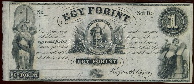 Emigrációs "Kossuth bankó" 18.. 1Ft "Sor B." T:I https://www.darabanth.com/de/101-Fernauktion/101.0/Numismatik/~30013/Emigracios-Kossuth-banko-18-1Ft-Sor-B-TI~II240432