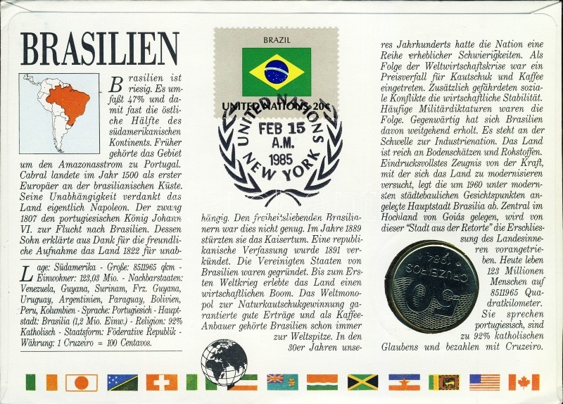 Beschreibung: Brazília 1984. 50C érmes, bélyeges boríték T:1