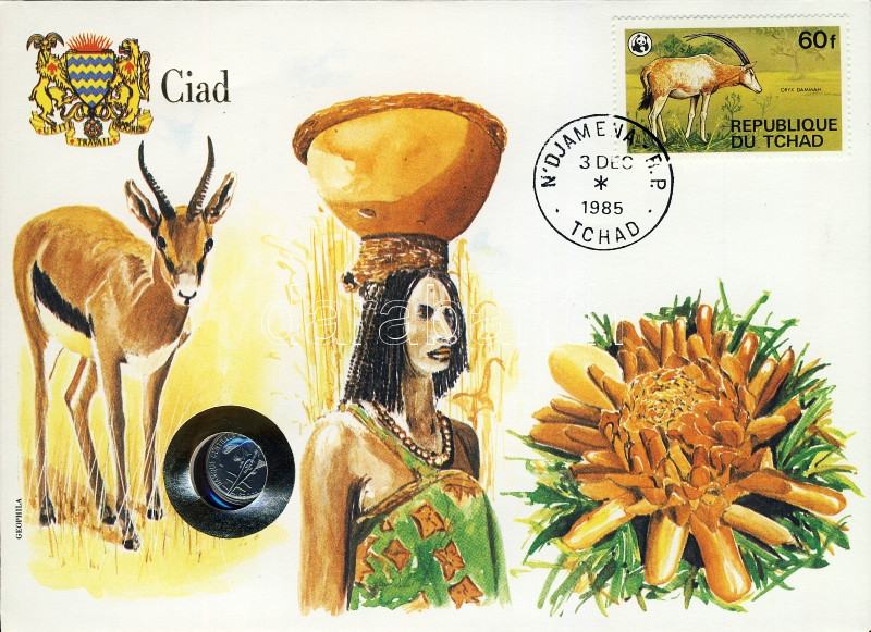 Csád 1983. 1Fr érmes, bélyeges boríték T:1 https://www.darabanth.com/de/101-Fernauktion/101.0/Numismatik/~30014/Csad-1983-1Fr-ermes-belyeges-boritek-T1~II235821