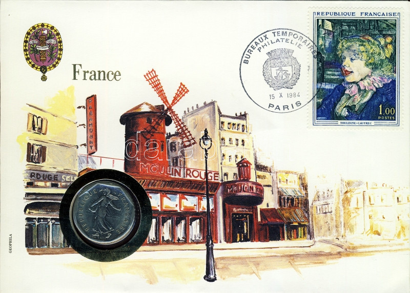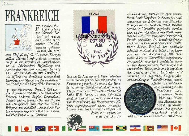 Beschreibung: Franciaország 1980. 2Fr érmes, bélyeges boríték T:1