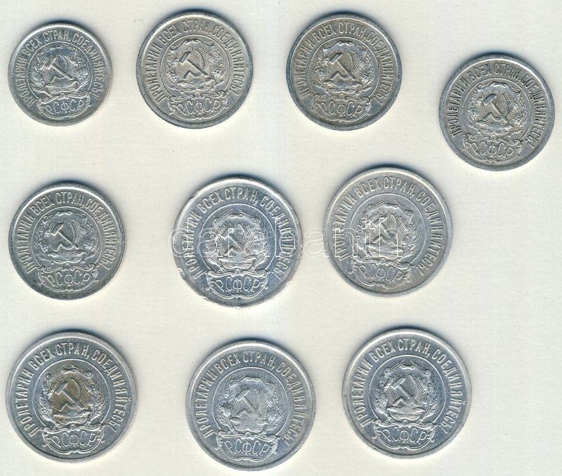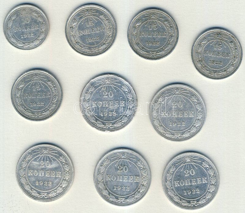 Beschreibung: Oroszország/Szocialista Szövetségi Szovjet Köztársaság 1922. 10k Ag (1x), 15k Ag (4x), 20k Ag (5x) T:2-,2/3 Összesen 10db Ag!
