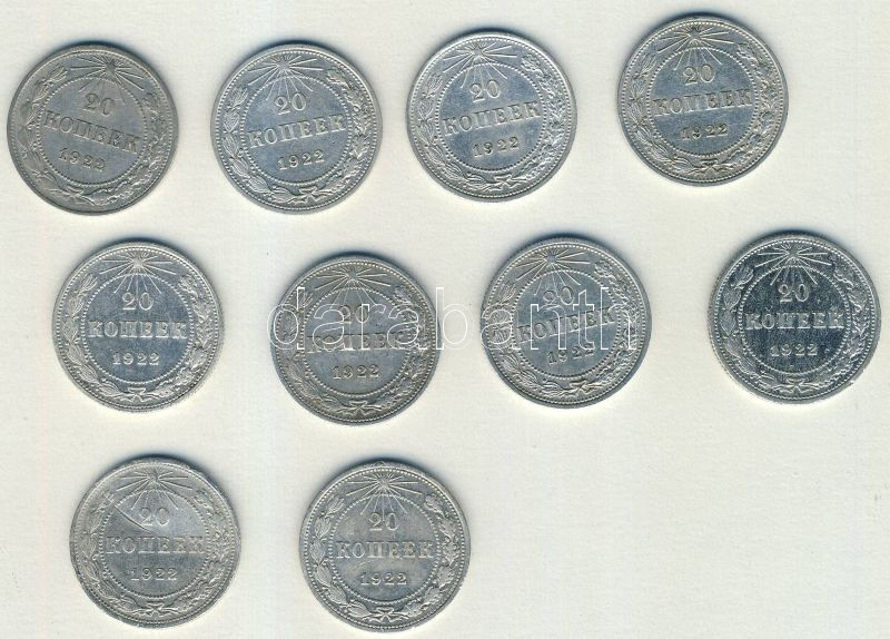 Beschreibung: Oroszország/Szocialista Szövetségi Szovjet Köztársaság 1922. 20k Ag (10x) T:2-,2/3,3+
