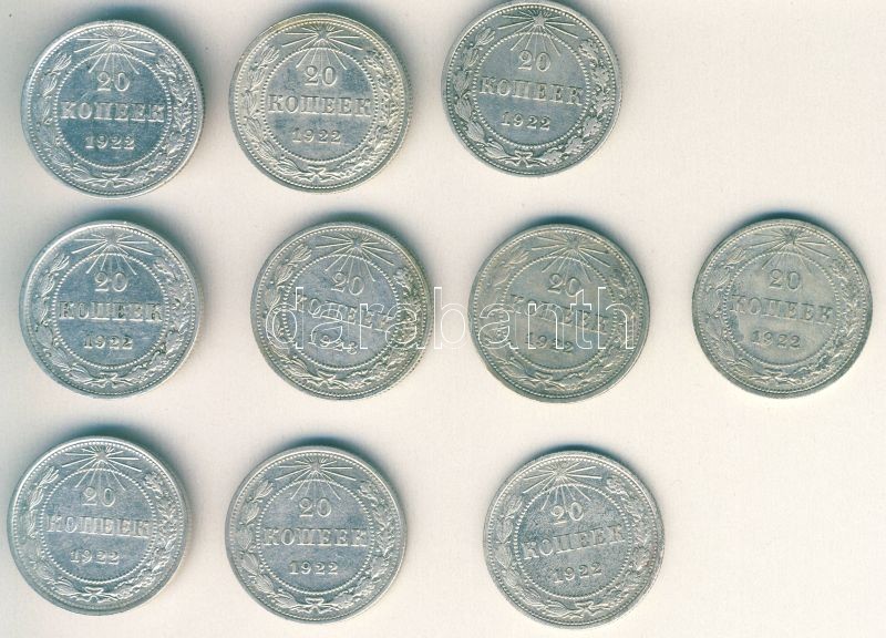 Oroszország/Szocialista Szövetségi Szovjet Köztársaság 1922-23. 20k Ag... https://www.darabanth.com/de/101-Fernauktion/101.0/Numismatik/~30019/OroszorszagSzocialista-Szovetsegi-Szovjet-Koztarsasag-1922-23-20k-Ag-10x-T2-23-3plus~II240741