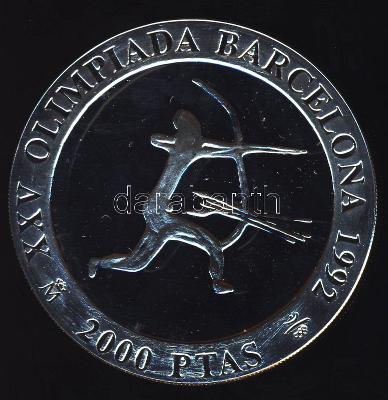 Beschreibung: Spanyolország 1990. 2000P Ag "Olimpia-íjászat" T:PP Tanúsítvánnyal!