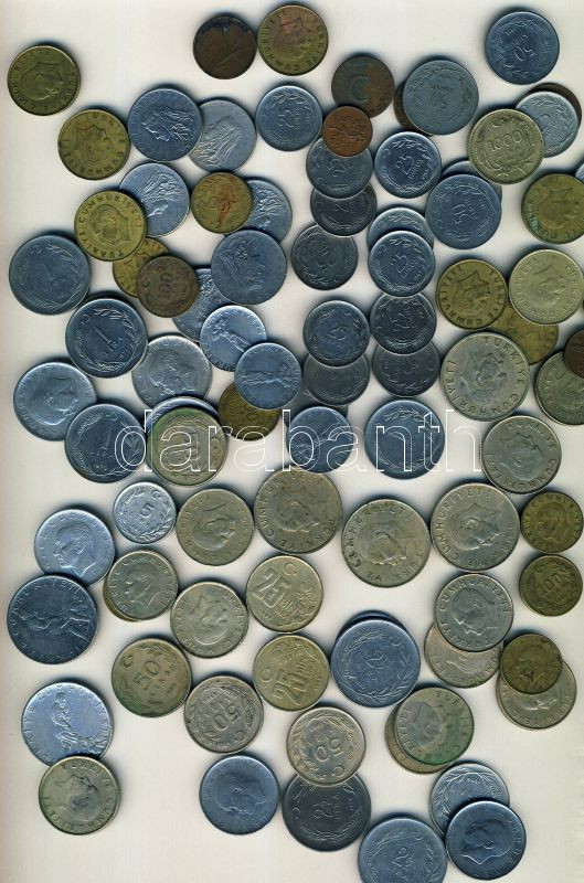 Törökország kis vegyes tétel 1960-as évektől 1990-es évekig, benne 5K, 10K, 25K, 50K, 1L, 2 1/2L, 5L, 10L, 25L, 50L, 100L (2klf), 500L, 1000L összesen 92db T:vegyes