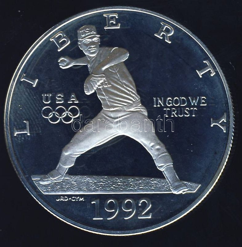 USA 1992. 1$ Ag "Olimpia-baseball" T:PP Tanúsítvánnyal! https://www.darabanth.com/de/101-Fernauktion/101.0/Numismatik/~30019/USA-1992-1USD-Ag-Olimpia-baseball-TPP-Tanusitvannyal~II236767
