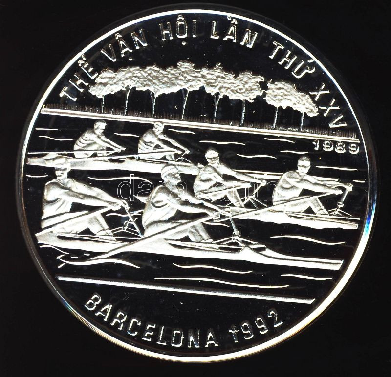 Vietnam 1989. 100D Ag "Olimpia-evezés" T:PP Csak 10.000db! Tanúsítvánn... https://www.darabanth.com/de/101-Fernauktion/101.0/Numismatik/~30019/Vietnam-1989-100D-Ag-Olimpia-evezes-TPP-Csak-10000db-Tanusitvannyal~II236681
