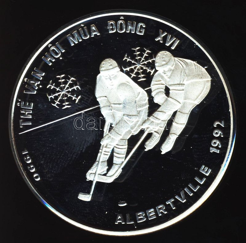 Beschreibung: Vietnam 1989. 100D Ag "Olimpia-jégkorong" T:PP Csak 10.000db! Tanúsítvánnyal!
