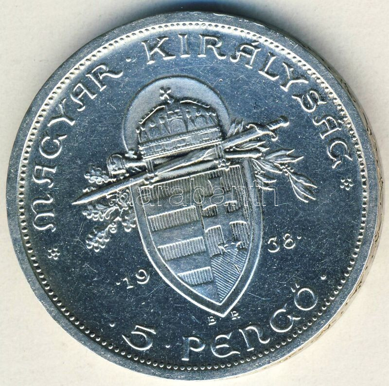 1938. 5P Ag "Szt.István" T:2 https://www.darabanth.com/de/101-Fernauktion/101.0/Numismatik/~30020/1938-5P-Ag-SztIstvan-T2~II238203