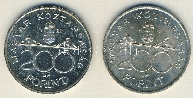 1992-93. 200Ft Ag "MNB" (2x) T:BU,2 https://www.darabanth.com/de/101-Fernauktion/101.0/Numismatik/~30020/1992-93-200Ft-Ag-MNB-2x-TBU-2~II239965