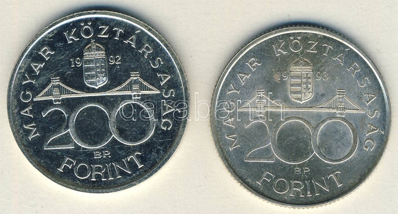 1992-93. 200Ft Ag "MNB" (2x) T:BU,2 https://www.darabanth.com/de/101-Fernauktion/101.0/Numismatik/~30020/1992-93-200Ft-Ag-MNB-2x-TBU-2~II239975