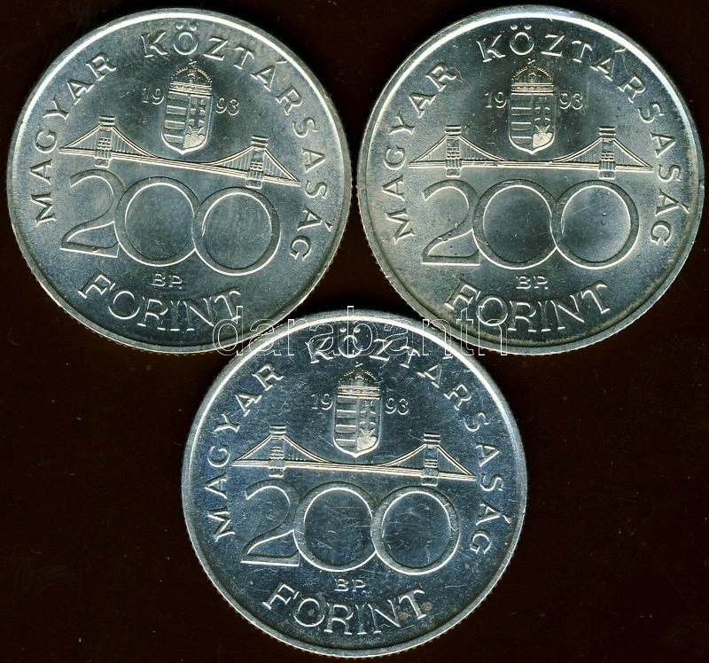 1993. 200Ft Ag "MNB" (3x) T:BU,2 https://www.darabanth.com/de/101-Fernauktion/101.0/Numismatik/~30020/1993-200Ft-Ag-MNB-3x-TBU-2~II239197
