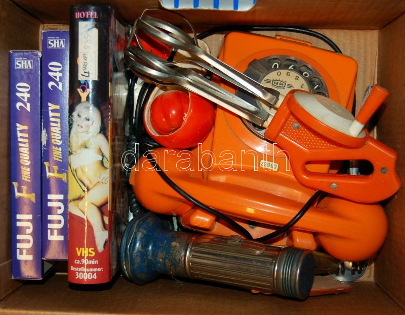 Beschreibung: Vegyes bolhapiac tétel bakelit telefon, porno VHS, egyéb