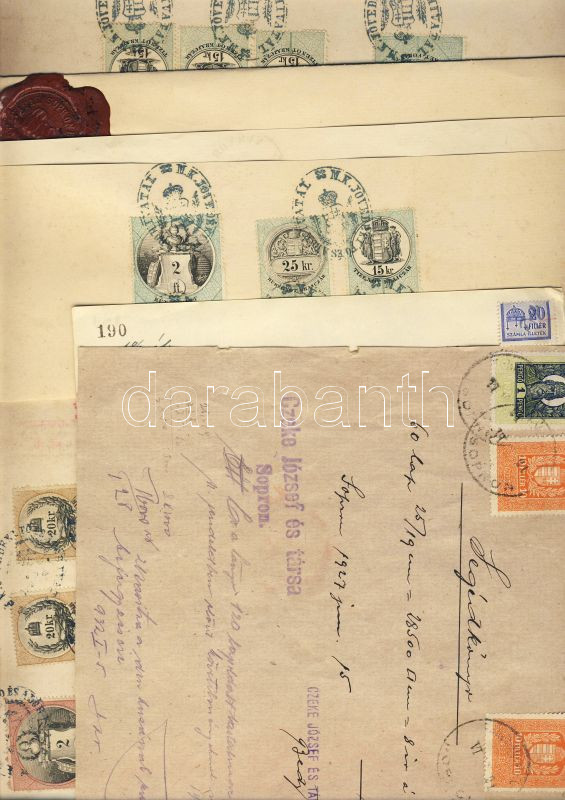 Beschreibung: 1870-1840 57 db okmánybélyeg és számos visazpecsét különböző iratokon / 57 document stamps and many wax-seals on different documnets