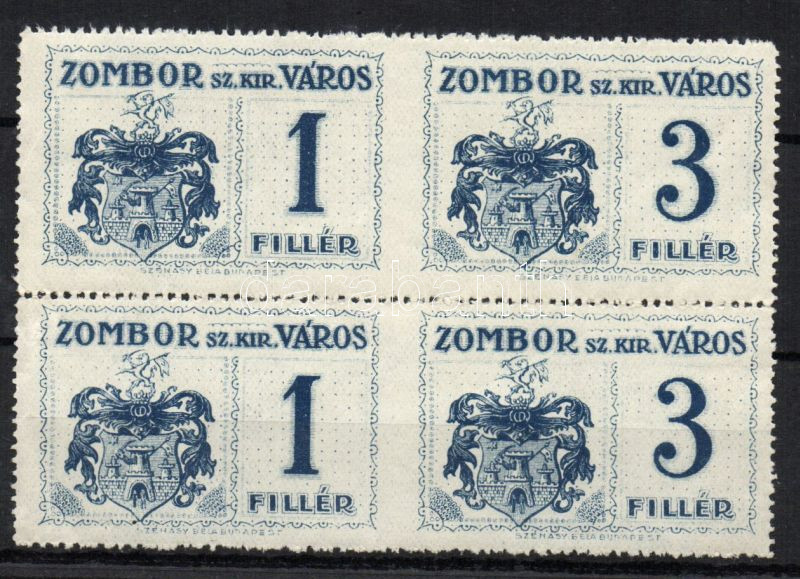 Beschreibung: Zombor városi okmánybélyeg 3f+5f középen függőlegesen fogazatlan négyestömb