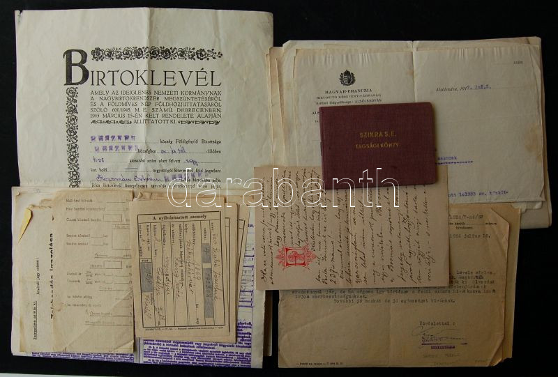 cca 1920-1950 30 db vegyes okmány, irat, benne biztosítási iratok, bir... https://www.darabanth.com/de/103-Fernauktion/103.0/Andere-Sammelgebiete/~100134/cca-1920-1950-30-db-vegyes-okmany-irat-benne-biztositasi-iratok-birtoklevel~II249303