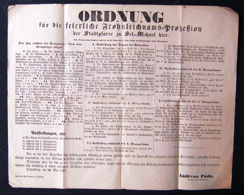 1877 Soproni felvonulás érdekes hirdetménye német nyelven / Oedenburg ... https://www.darabanth.com/de/103-Fernauktion/103.0/Andere-Sammelgebiete/~100142/1877-Soproni-felvonulas-erdekes-hirdetmenye-nemet-nyelven-Oedenburg-procession-announcement-50~II249752