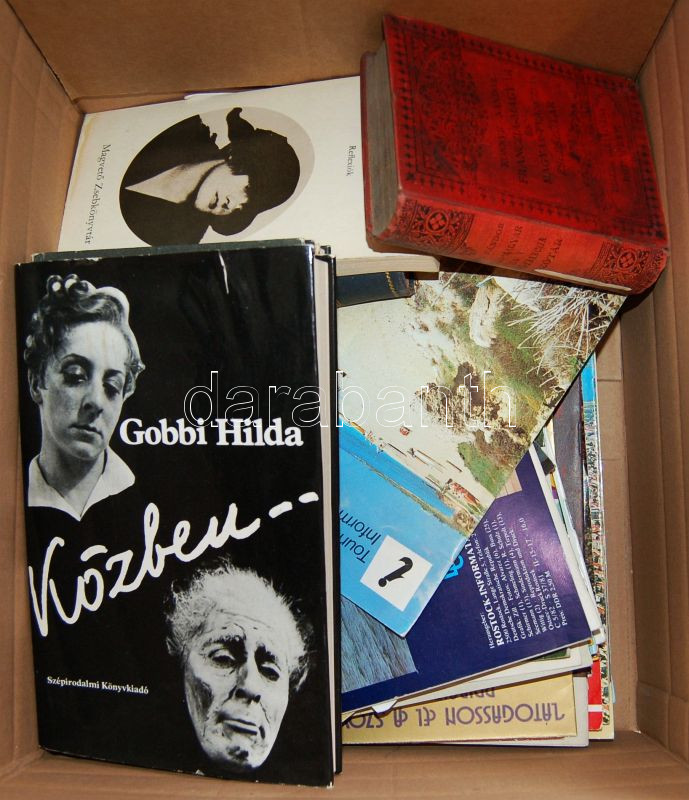 Beschreibung: Vegyes nyomtatvány tétel: benne kb 40 térkép és prospektus + Ady: Sápadt emberek, 1891-es francia-magyar szótár + 3 db színészekről szóló könyv