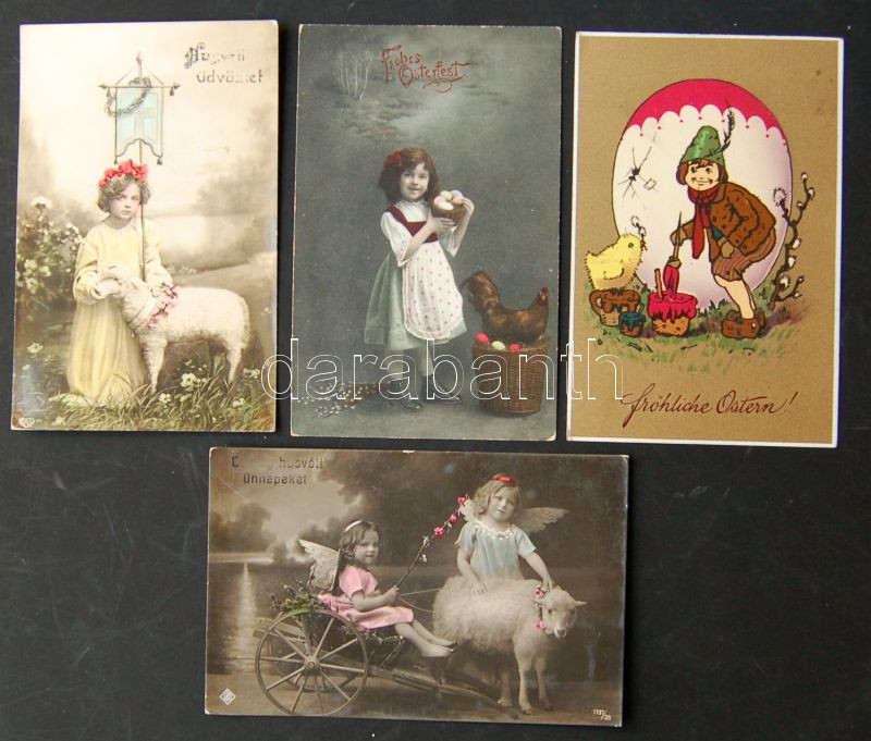 Beschreibung: 4 db húsvéti üdvözlőlap az 1910-es évekből
