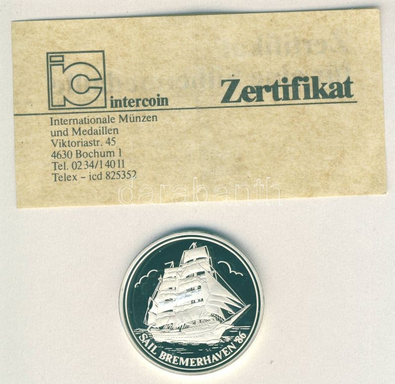 NSZK 1986. "Bremenhaven-árbócos hajó" Ag emlékérem, 17g T:PP Tanúsítvá... https://www.darabanth.com/de/103-Fernauktion/103.0/Numismatik/~100275/NSZK-1986-Bremenhaven-arbocos-hajo-Ag-emlekerem-17g-TPP-Tanusitvannyal-diszdobozban~II247017