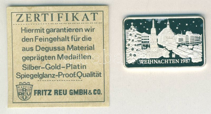 Beschreibung: NSZK 1987. "Karácsony" Ag tömb 17g T:PP Eredeti díszdobozban, tanúsítvánnyal!