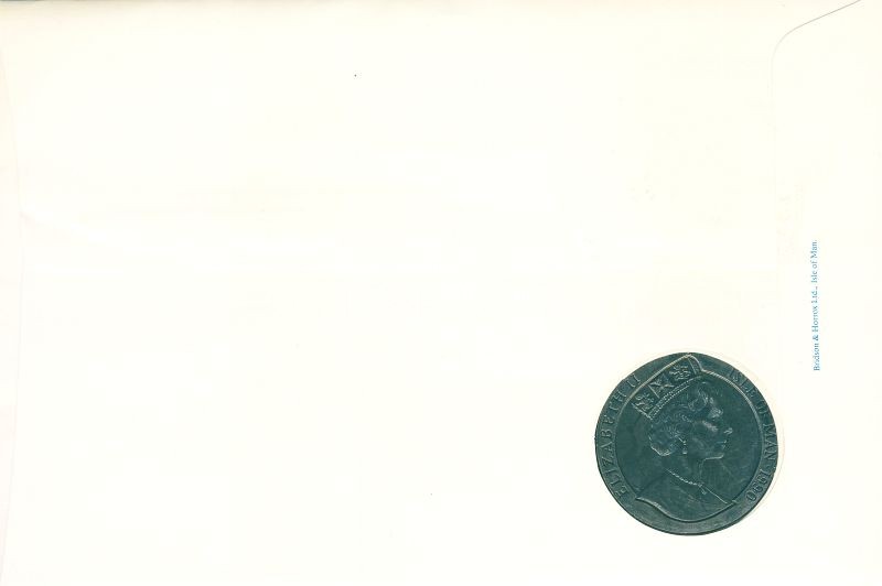 Beschreibung: Man-sziget 1990. 1C "Black penny" érmés, bélyeges borítékon T:2